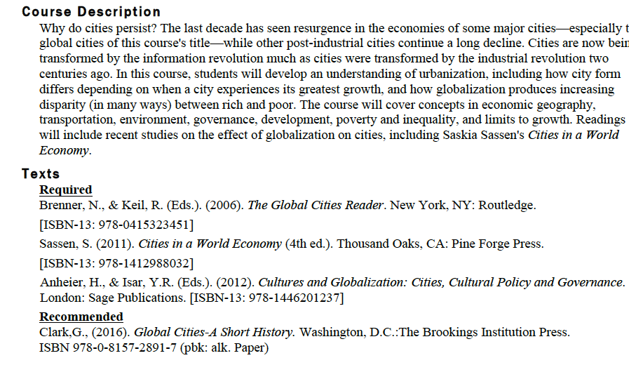 For eight years I was fortunate to have been offered the opportunity to redesign and then teach this second generation course, The Global City. (Master of Public Policy and Administration Program, MPPA, at Northwestern University). Due to my retirement and subsequent curriculum change, the course is no longer being offered but it clearly provided insights as to the cause and effect of globalization at the local and regional levels. There is just too much information here to go unused. Following the course description, I compiled a list of resources that may be of use to academics, students and practitioners alike. Some of it is a little dated but it still serves as a foundation for those interested into the socio-economic, demographic and migration patterns affecting globablization at the urban and regional levels. A word to the wise, this course was structured to address both governance and public policy. It was not developed as an urban planning course although its macro themes would clearly be of benefit. Regardless more than 250 graduate students interested in public policy formation and governance on both an international and domestic level benefitted from this course.
